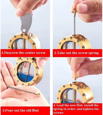Din cauza reglementărilor privind transportul aerian, combustibilul nu este inclus. Utilizați orice tip standard de lichid pentru brichete și cremene. Dacă aveți întrebări despre acest produs, nu ezitați să ne contactați, iar noi vă vom oferi cel mai bun serviciu post-vânzare.