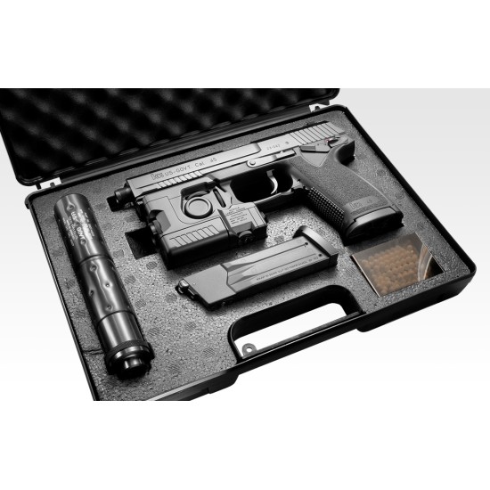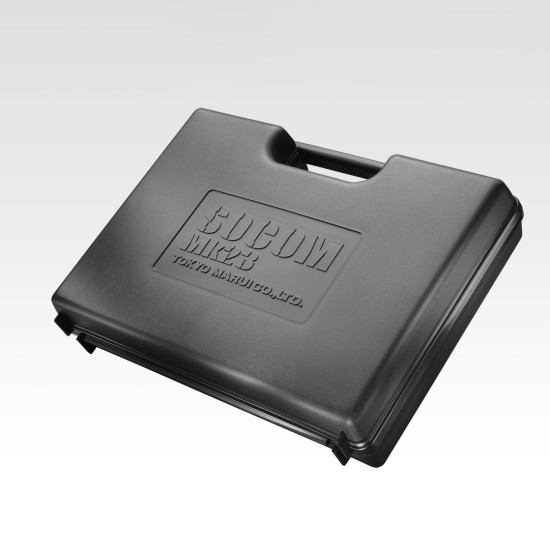 Socom Mark 23, amortizorul de zgomot dedicat și LAM sunt depozitate într-un container dur / cutie de arme. Plăcerea de a deschide pachetul și de a-l asambla complet echipat este excepțională.