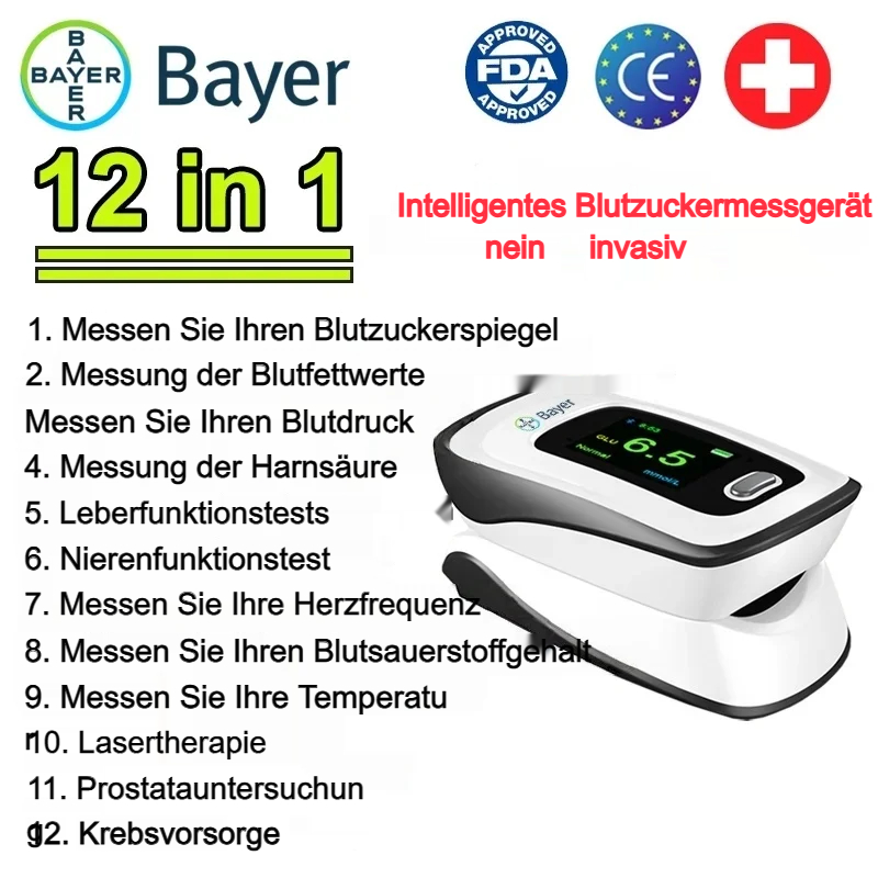 Um mehr Menschen dabei zu helfen, Diabetes vorzubeugen, hat Bayer HealthCare fünf Jahre lang an der Entwicklung dieses multifunktionalen [12-in-1] nicht-invasiven Blutzuckermessgeräts gearbeitet. Bei seiner Markteinführung konnte es zu einem sehr günstigen Preis vorbestellt werden, um die Gemeinschaft zu unterstützen. Nur ein Kauf pro Person. Das Angebot gilt bis Ende des Monats, also bestellen Sie jetzt.